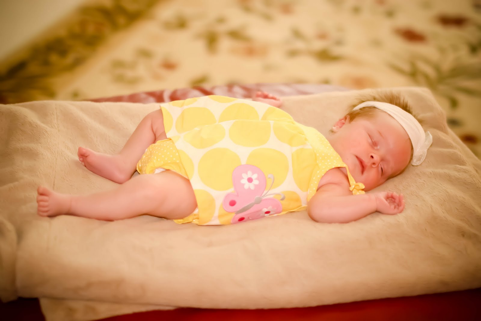 Kylie is napping, but still peeping 🙂 She’s getting some little rolls too! So precious. .