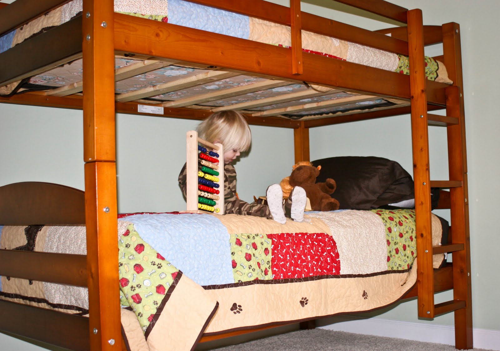 2. We also got Jeremy a bunkbed set when he was 4 years old,and that was almost 15 years ago and he still sleeps in it. Last year Kevin and I wanted to get him a full size bed a grown up bed ;-)that idea was shot down, he still wants to sleep in his bunk bed.