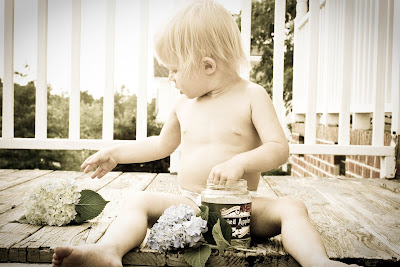 Hydrangeas are my favorite flower!! Obviously, the Lord knew this and our house came with 3 huge bushes of blooming hydrangeas!! We have blue, pink, and purple. . . they must have mixed. So beautiful, and I had some fun with them and my little guy while Daddy was away this afternoon.