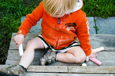 Colt is loving his chalk. I found him even drawing on himself and his shoes. Very nice 🙂