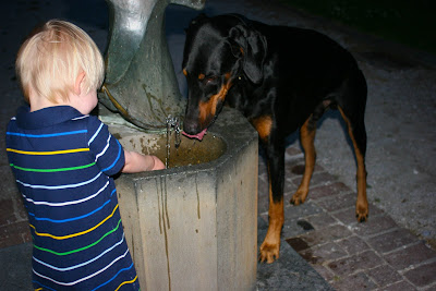 I think Junior only thought he was a doberman, he acted more like a ‘heinz’ dog – so friendly …another reason not to drink from city fountains.