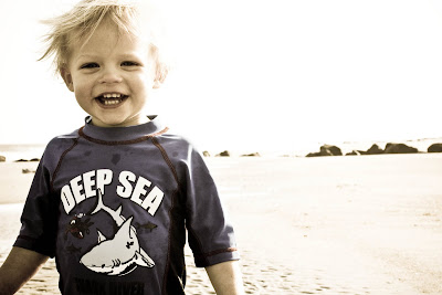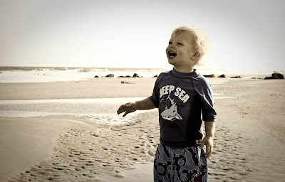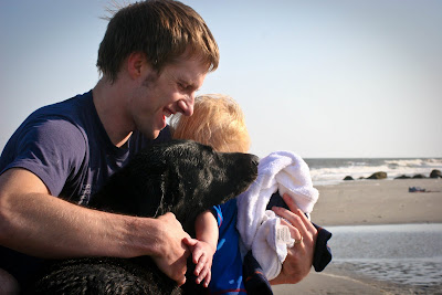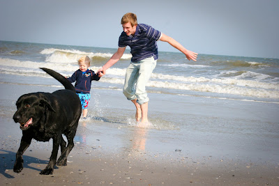 The weather was a little cool at first, but we ventured out for an evening walk on the beach. It was a good thing Colt had on swimming clothes, because he and his crazy daddy DID get in the ocean (despite what I would call frigid conditions!). They had a blast though, and Colt LOVED the water. That made the vacation all the more fun of course. Obviously, Rosie went too. She is a true lab. . . loving the water right along with Colt.