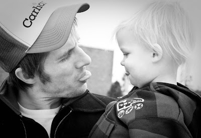 Blurry because of all that jumping. . . but classic of Daddy playing with his little buddy whose hair is flying in the wind 🙂
