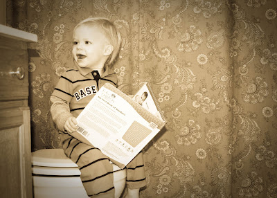 So, the interesting thing about these pictures is they are not posed. He wanted to read, but he wanted to sit on the toilet. I’m not sure how sanitary that is. . . but he obviously wasn’t USING the toilet. Wonder where he learned this anyways? 🙂
