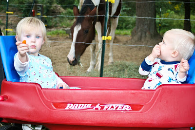 Sarah shows Colt exactly what drawer the carrots are in and they jump in the wagon to go feed the horse! That’s right. . . Gramps is boarding a horse now too. It’s becoming a regular looking farm down there (and smelling like one too).