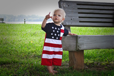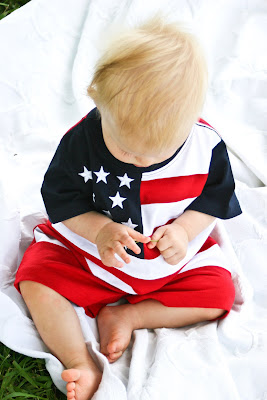 Well, Aunt Jane bought the babies some pretty cute outfits for the 4th (which is next weekend – unbelievable how time flies!) Since we won’t be together then, we decided to go ahead and get some shots while we were at the lake one morning.
