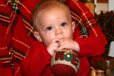 At 4 months, we thought we’d go ahead and try to give Colt some cereal to help him stretch his night time sleep from 8-9 hours to 11-12 hours continuously. It didn’t even phase him though! He still slept from 8-5, got up to eat, and went back down until 8ish. I was slightly consoled when I read that at his age I shouldn’t expect him to go more than 8-9 hours at night without food at this age. Breastmilk just doesn’t last as long as formula they say. . . I finally got to meet “thefamilyof3scotts” – they’re blog is a link on family and friends. Julie (David’s cousin), Myron, and Evan were in Alum Creek visiting Myron’s family for Thanksgiving. David and Julie were joking about “what are the odds that we would both marry people from the small town of Alum Creek, WV?”